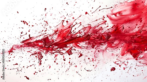 Dynamic ruby paint splatters capturing the essence of movement and energy on a background of white.