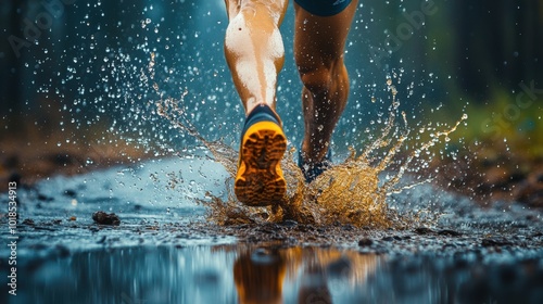 runner, splash, water, mud, jogger, activity, motion, sport, exercise, fitness, leg, nature, adventure, energy, enthusiasm, health, running shoe, landscape, trail, countryside, wet, blurred, sharpened, action, strength, vitality, lifestyle, summer, dirt, forest, rain, weather, speed, determination, athleticism, environment, collection, dynamic, photo, closeup, human, kinetic, scenery, terrain, freedom, exploration