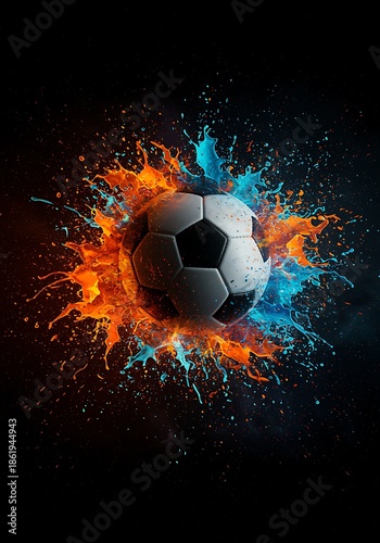 football, fire, water, splash, dynamic, sport, soccer, football, action, explosion, energy, vibrant, orange, blue, black, white, football match, transparent, background