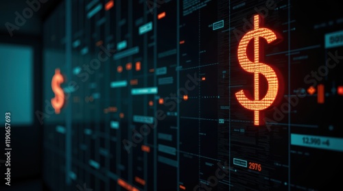 finance, datum, technology, currency, symbol, digital, modern, investment, chart, market, trading, monitor, glowing, information, screen, interface, economy, visualisation, design, wall, business, abstract, dashboard, graphic, economic, trend, pattern, to illuminate, computing, motion, visual, element, bright, network, statistic, analysis, display, innovative, control