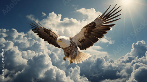 Eagle flying above the clouds