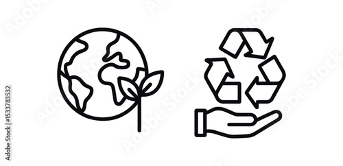 Earth and recycling symbols: global eco and sustainability icons vector line icon illustration