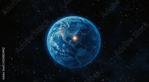Earth Planet Shining Brightly In Space Among Stars