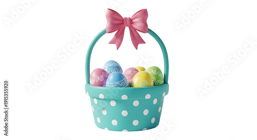 easter, basket, egg, colourful, teal, polka, dot, pink, bow, transparent, background, isolated, spring, holiday, celebration, egg, hunt, rabbit, chocolate, candy, festive, fun, whimsical, playful, bright, vibrant, pastel, colours, blue, yellow, green, ribbon, decorative, seasonal, traditional, symbolic, new, life, renewal, joy, happiness, springtime, festival, cheer