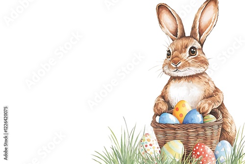 Easter day celebration watercolor style bunny with eggs spring garden whimsical art