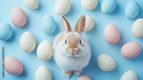 easter, decoration, concept, rabbit, pastel, egg, holiday, design, cute, colourful, spring, celebration, festive, background, top, view, animal, rabbit, tradition, season, vibrant, arrangement, art, card, poster, creative, cheerful, playful, symbol, joyful, blue, pink, white, decoration, springtime, happy, lively, warmth, oneness, innocence, charme, serene, bright, harmony, aesthetic, peaceful, trendy