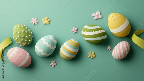 Easter Eggs Decorated with Flowers and Ribbon - A Springtime Celebration