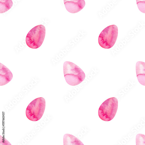 Easter eggs pink background. Seamless watercolor pattern with hand drawn cute pink eggs for wrapping paper, wallpaper, holidays textile, fabric texture