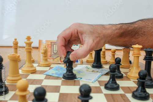 strategy, game, business, banknote, challenge, competition, bill, white, chessboard, hand, success, chess, euro, piece, concept, knight, finance, king, money, black, cash, intelligence, play, queen, banking, battle, economy, pawn, pay, payment, bank, board, checkmate, currency, design, loan, metaphor, note, wealth, illustration, paper, symbol, invitation, leadership, planning, thinking, board game, conflict, power