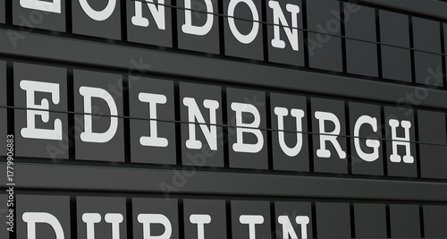 Edinburgh, England, United Kingdom, travel destination, airport departure board. Tourism, booking, vacation, travel, holiday, journey. 3D illustration