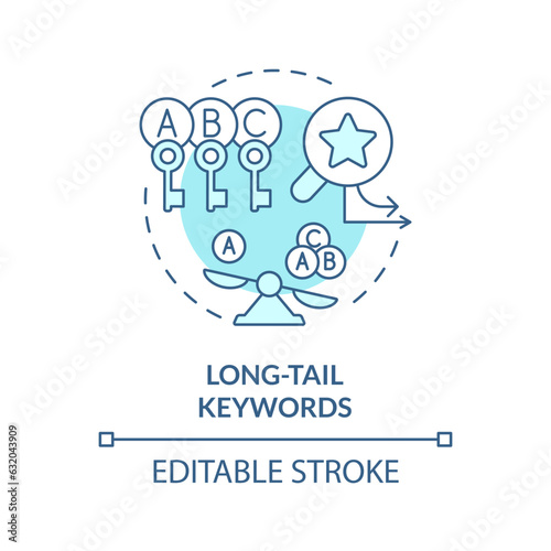 Editable long tail keywords icon concept, isolated vector, AI for SEO blue thin line illustration.