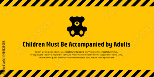 Editable yellow warning poster Children Must Be Accompanied by Adults with teddy bear icon