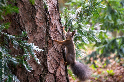 squirrel, tree, animal, nature, rodent, red, mammal, wildlife, forest, park, fur, game, pretty, autumn, swallowtail, brown, climb, nut, acorn, forest, green, outdoors