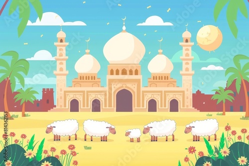 Eid Al Adha Banner Design Vector Illustration. Islamic and Arabic Background for Muslim Community Festival. Moslem Holiday. 3D Modern Islamic suitable for Ramadan, Raya Hari, Eid al Adha and Mawlid.