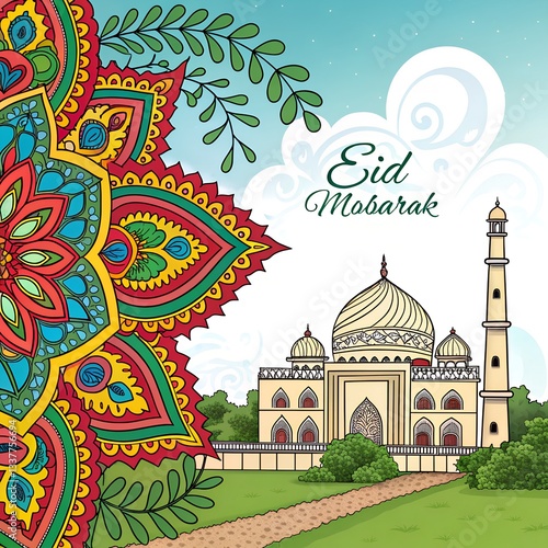 Eid Mubarak Greeting Element Design with Mixed Colors on White Background – Festive Islamic Celebration