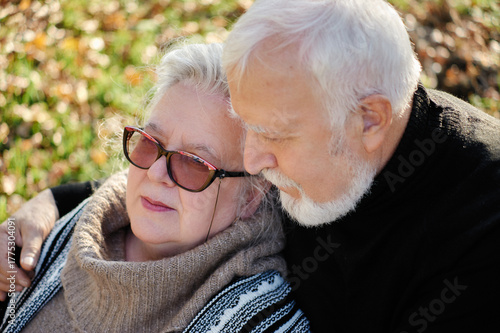 park, autumn leaf, affection, senior, togetherness, moment, love, outdoors, nature, sunlight, happiness, leisure, friendship, companionship, warm clothes, sweater, cuddling, joy, calmness, serene, peaceful, october, intimacy, bonding, tenderness, sitting, picturesque, relaxed, harmony, beauty, caring, calm, family, smile, quality time