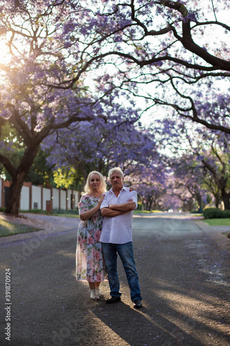elderly, family, generation, caucasian, grandparent, happiness, lifestyle, old, pensioner, people, senior, summer, three, toddler, together, village, walk, beautiful, flower, natural, green, nature, spring, smile, tree, blossom, sunny, sunset, enjoy, romantic, blooming, elegant, jacaranda, countryside, retirement, married, wife, husband, friendship, vitality, two people, togetherness, affectionate, grey hair