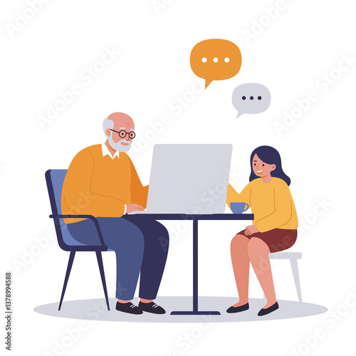 lass, talking, laptop, communication, togetherness, family, interaction, technology, sitting, conversation, digital, home, generation, learning, bonding, smile, expression, joy, casual attire, education, leisure, connection, life events, comfort, support, cognition, creativity, happiness, lifestyle, modern, teamwork, friendship, chat, relationship, dialogue, informal, thoughtful, relaxed, fun, youth, wisdom, guidance, coaching, activity