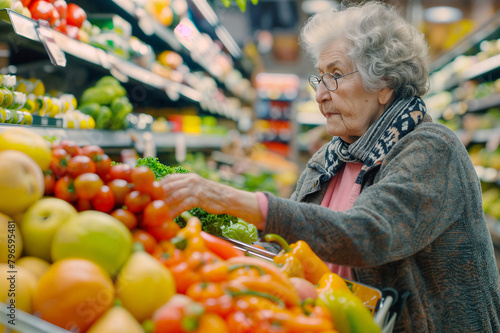 Elderly Woman Selecting Healthy Ingredients at a Supermarket