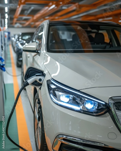 electric, car, charging, station, vehicle, automobile, energy, transport, technology, battery, power, plug, charger, cable, innovation, future, sustainability, parking, garage, design, headlamp, front, view, close, up, clean, transportation, industry, infrastructure, modern, alternative, environment, fuel, mobility, system, connection, port, production, row, line, interior, equipment, manufacturing, facility, economy, investment, development, progress, efficiency