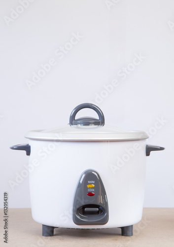 Electric rice cooker on white background