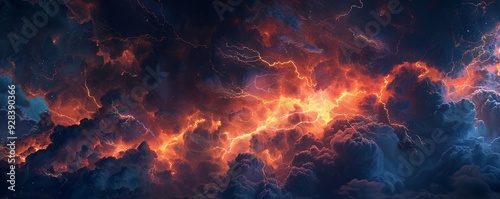 Electric storm clouds illuminated by flashes of lightning, 4K hyperrealistic photo