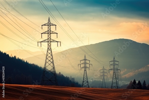 electric, transmission, tower, pylon, stretching, across, ai, generated, electricity, power, energy, cable, voltage, industry, electrical, technology, powerline, industrial, supply
