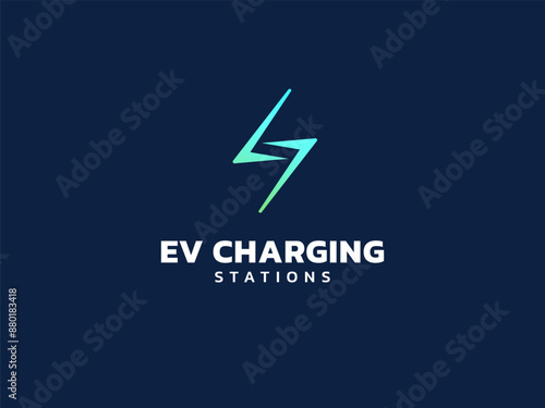 Electric vehicle charging with letter S modern Lightning Bolt Symbol logo vector design concept. EV charging logotype symbol for Electric Car, EV station, ui, business, infographic, web, clean energy.