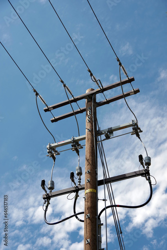 blue, cable, closeup, current, danger, distribution, electric, electrical, electricity, energy, equipment, high, industrial, industry, infrastructure, dielectric, line, metal, network, no people, pole, power, pylon, sky, structure, supply, technology, transmission, voltage, wire