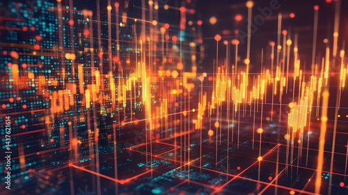 Electronic circuit with data dots and lines on a tech background