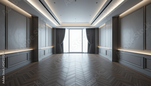room, interior, design, elegance, light, wall, parquet, flooring, window, curtain, grey, bright, roomy, calm, refined, overhead, subtile, sanctuary, peaceful, sophisticated, architecture, modern, space, empty, nobody, home, indoor, residence, property, estate, luxury, classic, style, herringbone, wooden, pattern, decoration, illuminated, perspective, symmetry, clean, contemporary, interior design, residential
