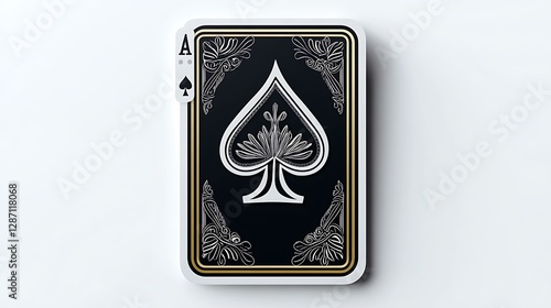 playing card, ace, spade, black, white, gold, sticker, design, ornate, elegant, graphic, illustration, card game, gambling, playing card, suit, symbol, acetate, decoration, artwork, vintage, pattern, border, detailed, refined, luxury