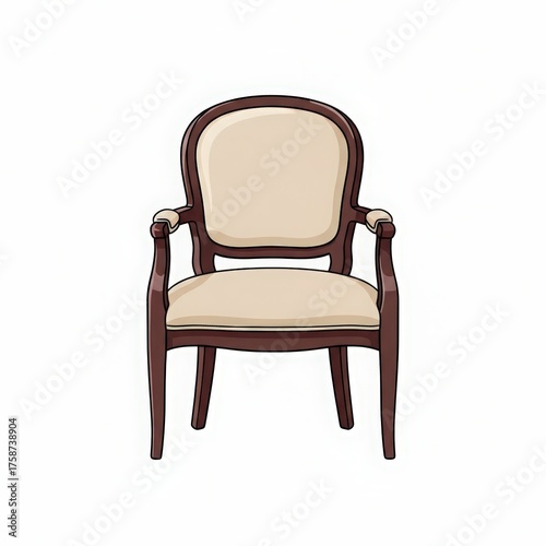 armchair, chair, antique, vintage, furniture, upholster, wood, carved, classic, traditional, elegant, ornate, interior design, home decor, living room, bedchamber, study, parlour, single object, isolated, white background, studio shot, luxury, comfort, seating, decorative, historical, timeless, creamy, beige