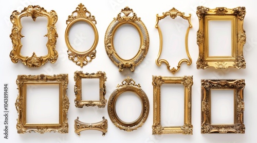 Elegant antique picture frames in gilded gold, isolated on a white background, perfect for showcasing art