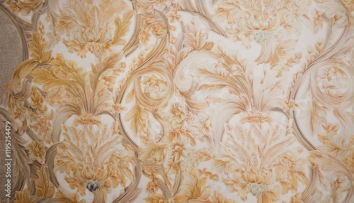 Elegant beige and gold floral wallpaper adds a touch of luxury to any room.