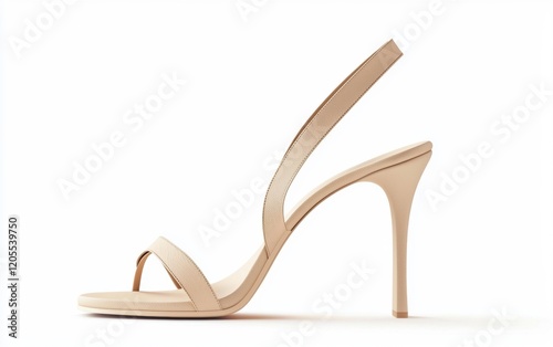 Elegant beige high-heeled sandals with thin straps and a modern design on a white background