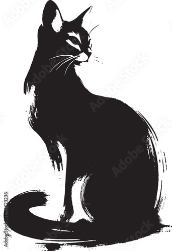 cat, black, silhouette, brushstroke, animal, felino, artwork, illustration, graphic, design, pet, domestic, mammal, minimalist, artistic, shape, style, drawing, ink, isolated, white, background, portrait, simple, elegant, modern, contemporary, creative, vector, image, clip, art, decorative, outline, playful, curious, sitting, tail, whisker, face, side, profile, brush, stroke