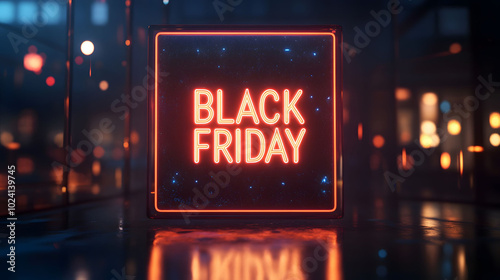 Elegant Black Friday Neon Sign, glowing red text floating above a dark backdrop, exuding a luxurious modern retail ambiance.