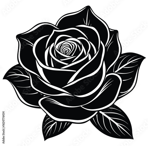 Elegant black rose flower vector illustration, a seamless floral design pattern with a vintage botanical sketch for decoration
