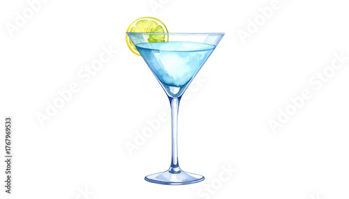 Elegant Blue Cocktail with Lime in Martini Glass Illustration.