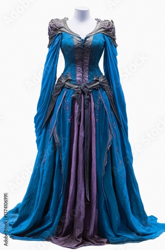fantasy, dress, blue, mediaeval, royals, queen, elegant, gown, costume, design, intricate, style, ornate, wear, fabric, fashion, detailed, outfit, unique, luxury, theatrical, creative, inspired, embroidery, fancy, concept, beautiful, stunning, historical, vintage, mannequin, dummy, woman, female, antique, old, ball, noble, baroque, regal, aesthetic, aristocratic, long, clothing, clothes