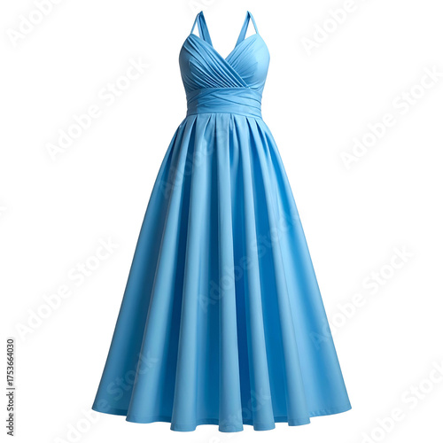 dress, blue, gown, formal, elegant, strap, bodice, skirt, flowing, gathered, fabric, fashion, party, prom, wedding, bridesmaid, evening dress, ceremony, occasion, glamourous, chic, sophisticated, stylish, design, texture, light, airy, soft, classic, graceful, beautiful, pleated, sleeveless, satin, long, silhouette, figure, composition, style, wearable, attire, apparel, clothing, textile, render, digital