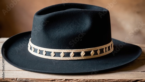 Elegant bolo hat with an ornamental band, perfect for creating a memorable look.