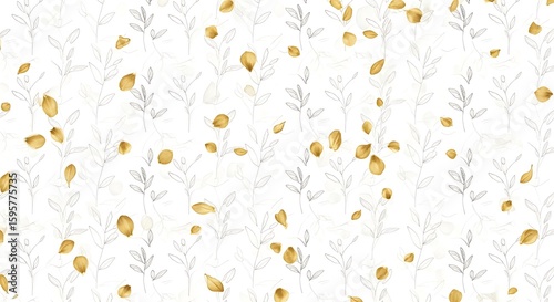 botanical, pattern, flower petals, gold, stem, floral, sketched, nature, wallpaper, delicate, design, white, background, plant, texture, spring, summer, decorative, art, element, fabric, print, textile, graphic, vector, illustration, seamless, vintage, style, organic, leaf, abstract, modern, surface, repeat, hand, drawn, watercolor, gentle, artistic