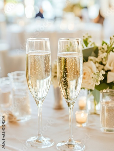 Elegant champagne toast wedding reception photography indoor venue close-up celebration concept