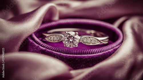 diamond, ring, engagement, jewellery, wedding, precious, stone, silver, white, gold, marriage, proposal, love, romance, luxury, fashion, accessory, gift, present, purple, velvet, satin, fabric, texture, sparkle, shine, bright, elegant, beautiful, glamourous, classic, romantic, bridal, photo, product, still, life, close, up, macro, detail, fine, metal, gemstone, stone, accessory, design