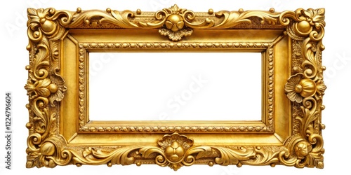 isolated, frame, photo frame, clip art, white background, copy space, gold, design element, gold, gilded
