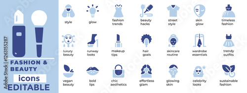 Elegant Fashion and Beauty icon vector set perfect for branding, digital design, and stylish creative projects