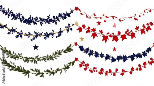 Elegant Festive Garland Illustrations: Patriotic Designs. AI Generated