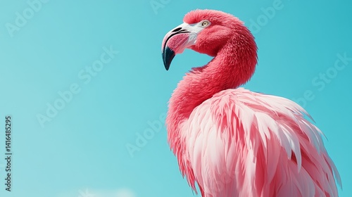 Elegant flamingo portrait against clear turquoise skies provides a vibrant tropical aesthetic featuring refined textures in delightful pink plumage display